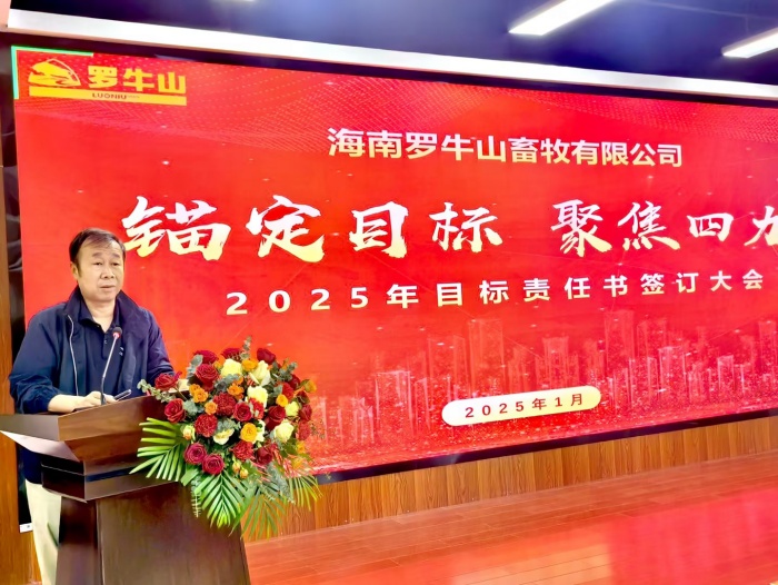 2025年1月12日下午,海南羅牛山畜牧有限公司2024年年終工作總結(jié)會(huì)暨2025年目標(biāo)責(zé)任書(shū)簽訂大會(huì)在羅牛山產(chǎn)業(yè)園電商大樓3樓順利召開(kāi),畜牧公司副總經(jīng)理胡永發(fā)主持會(huì)議。