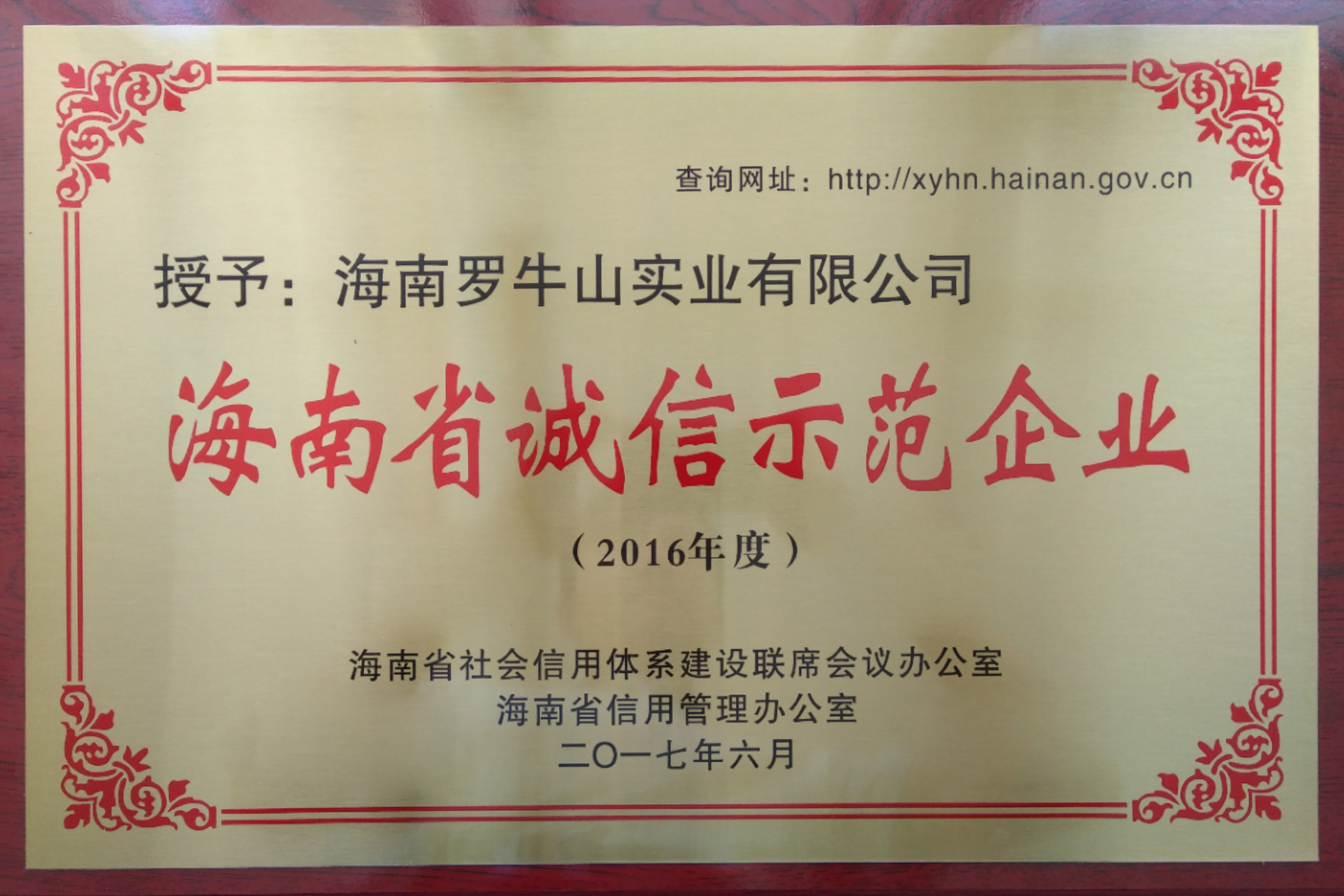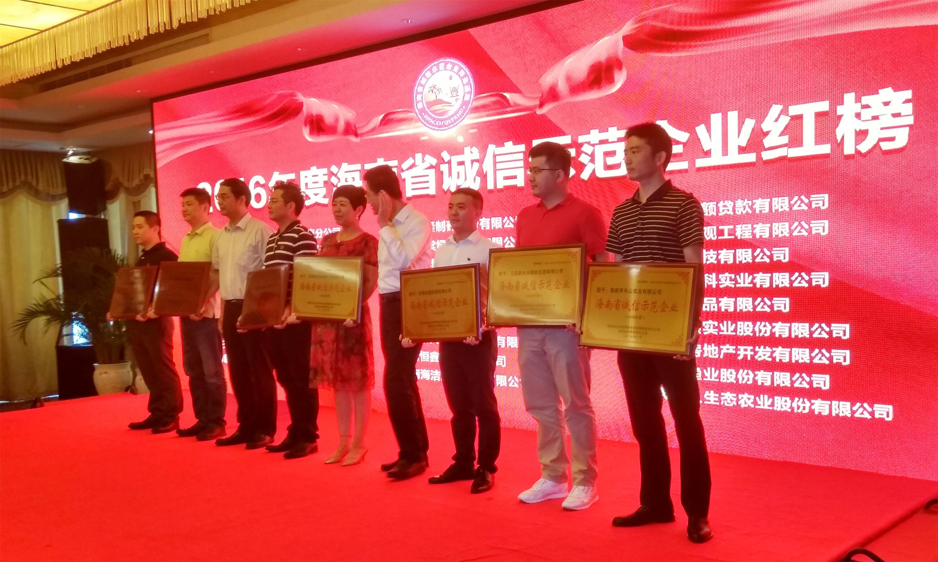 7月4日,在2016年度海南省誠信示范企業(yè)總結(jié)大會(huì)暨授牌儀式上,海南羅牛山實(shí)業(yè)有限公司(原??诹_牛山小額貸款股份有限公司)榮獲“海南省誠信示范企業(yè)”稱號(hào)。