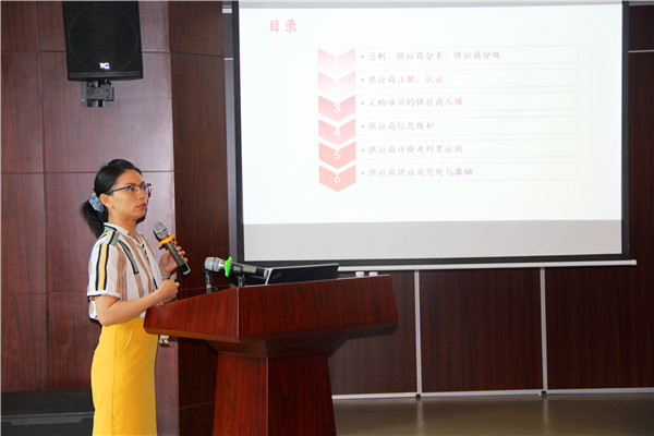 培訓(xùn)會由股份公司招標(biāo)采購部供應(yīng)商經(jīng)理鄭朝慧主講。鄭朝慧從供應(yīng)商分類、分級、注冊、認(rèn)證等方面對《供應(yīng)商管理辦法(試行)》進(jìn)行詳細(xì)解讀,同時明確各單位任務(wù)的時間節(jié)點(diǎn),并以股份公司為例,為下屬各單位本地化工作進(jìn)行指導(dǎo)。