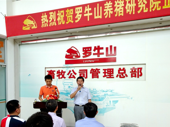 李再華董事長(zhǎng)宣布羅牛山養(yǎng)豬研究院正式成立