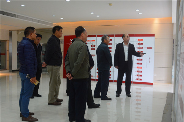 王楓引導(dǎo)調(diào)研組一行參觀生產(chǎn)線