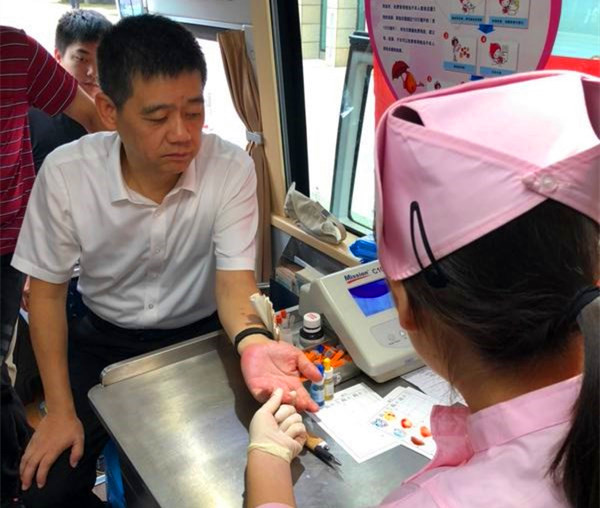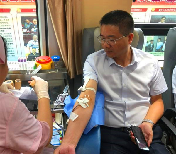 股份公司副總裁唐山榮正在獻(xiàn)血