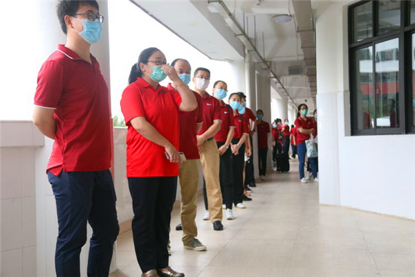 4月2日上午,海口景山學(xué)校管理人員及部分教職工180人到校,針對(duì)開(kāi)學(xué)返校、班級(jí)排查、食堂就餐、宿舍管理、學(xué)生離校、演練總結(jié)等六個(gè)環(huán)節(jié),進(jìn)行了現(xiàn)場(chǎng)模擬開(kāi)學(xué)演練,正式拉開(kāi)了2020年春季學(xué)期開(kāi)學(xué)工作序幕。