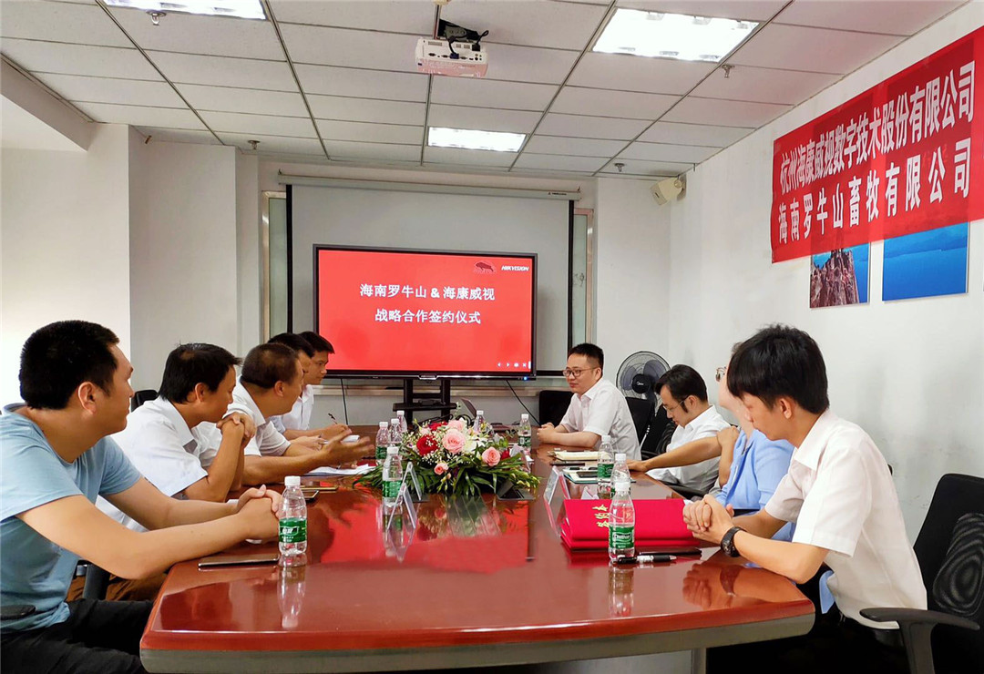2020年6月23日,海南羅牛山畜牧有限公司與杭州海康威視數(shù)字技術(shù)股份有限公司海南分公司(下稱??低暎┖炇饝?zhàn)略合作協(xié)議。雙方將通過(guò)整合各自優(yōu)勢(shì)資源,形成聯(lián)動(dòng)機(jī)制,深度開展戰(zhàn)略合作,用數(shù)字科技加速羅牛山畜牧板塊智能化升級(jí),共同為提高海南畜牧業(yè)的智能化應(yīng)用水平作出貢獻(xiàn)。羅牛山畜牧公司流程信息總監(jiān)杜英與??低暫D戏止究偨?jīng)理陳超代表雙方簽約。