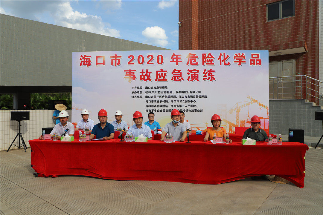 6月23日下午,??谑?020年危險(xiǎn)化學(xué)品事故應(yīng)急演練在羅牛山冷鏈物流園順利開展。本次演練旨在積極響應(yīng)2020年全國“安全生產(chǎn)月”,檢驗(yàn)組織應(yīng)對突發(fā)事故的自救和應(yīng)急處置能力,增強(qiáng)全體員工的安全意識。演練由??谑袘?yīng)急管理局主辦,桂林洋開發(fā)區(qū)管委會(huì)、羅牛山股份有限公司承辦。海口市應(yīng)急管理局黨委委員盧定安,安全生產(chǎn)監(jiān)督科科長馮梅仙,美蘭區(qū)應(yīng)急管理局局長馮學(xué)陽,??谑泄鹆盅箝_發(fā)區(qū)安委辦主任楊家堤,羅牛山股份有限公司安全與設(shè)備管理部負(fù)責(zé)人林維炎等出席現(xiàn)場觀摩。羅牛山冷鏈物流事業(yè)部副總經(jīng)理李勝紅擔(dān)任本次演練總指揮。