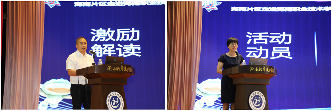 圖說(shuō):萬(wàn)和證券海南分公司總經(jīng)理程雄海(左)進(jìn)行激勵(lì)解讀;海職院團(tuán)委副書記方億群(右)作動(dòng)員講話。