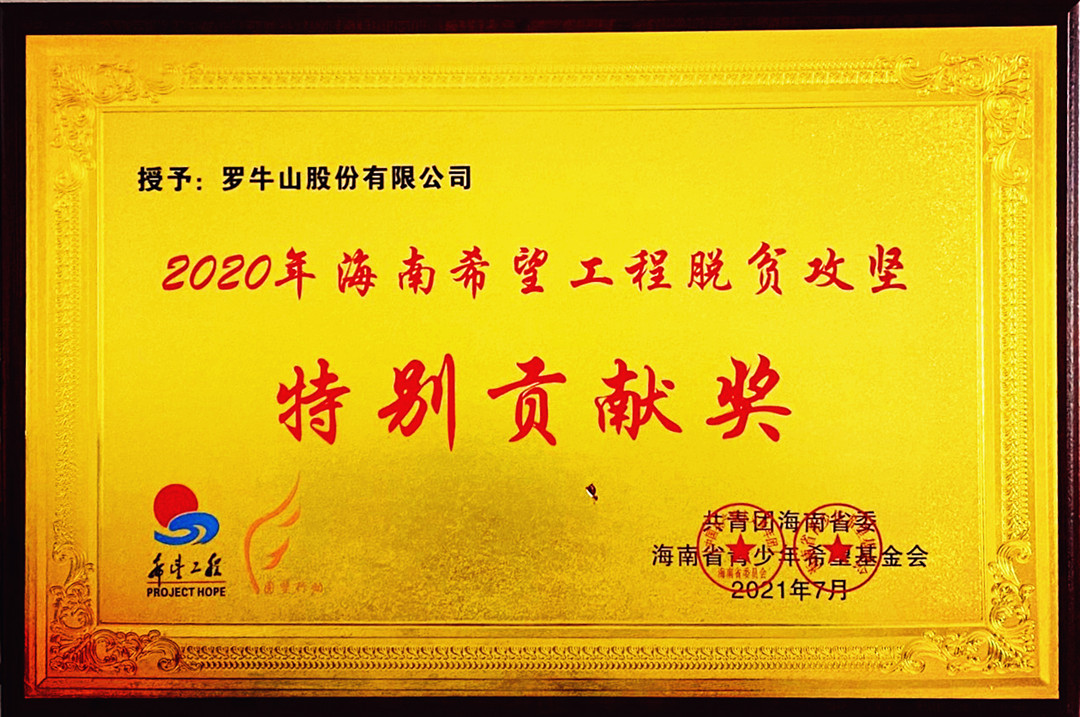 羅牛山股份有限公司榮獲“2020年度海南省希望工程脫貧攻堅(jiān)特別貢獻(xiàn)獎(jiǎng)”