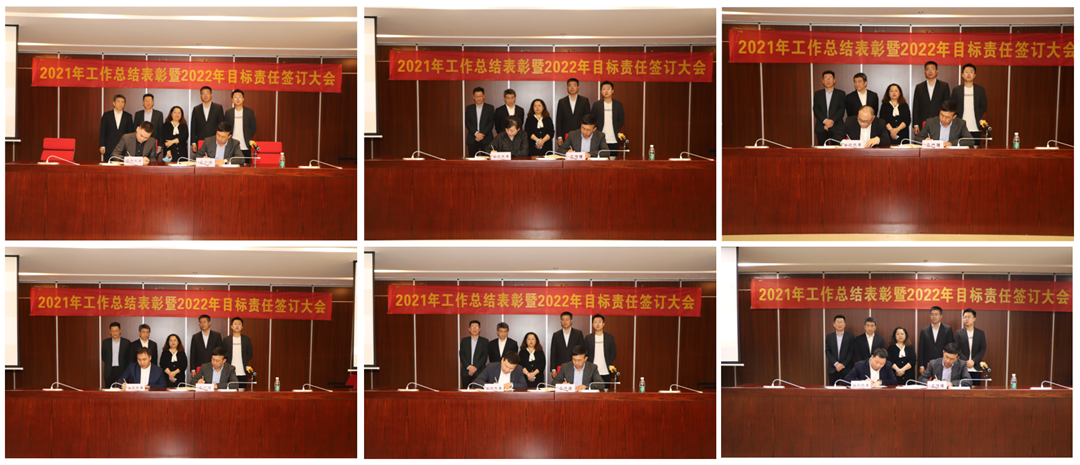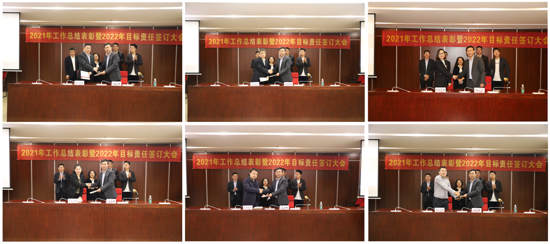 圖說:營銷、工程、設(shè)計、報建、成本分管領(lǐng)導(dǎo)及業(yè)務(wù)主要負責(zé)人分別在會上作2022年工作目標與實施舉措的表態(tài)發(fā)言,并與公司執(zhí)行總經(jīng)理曾睿簽署了經(jīng)營目標責(zé)任書。