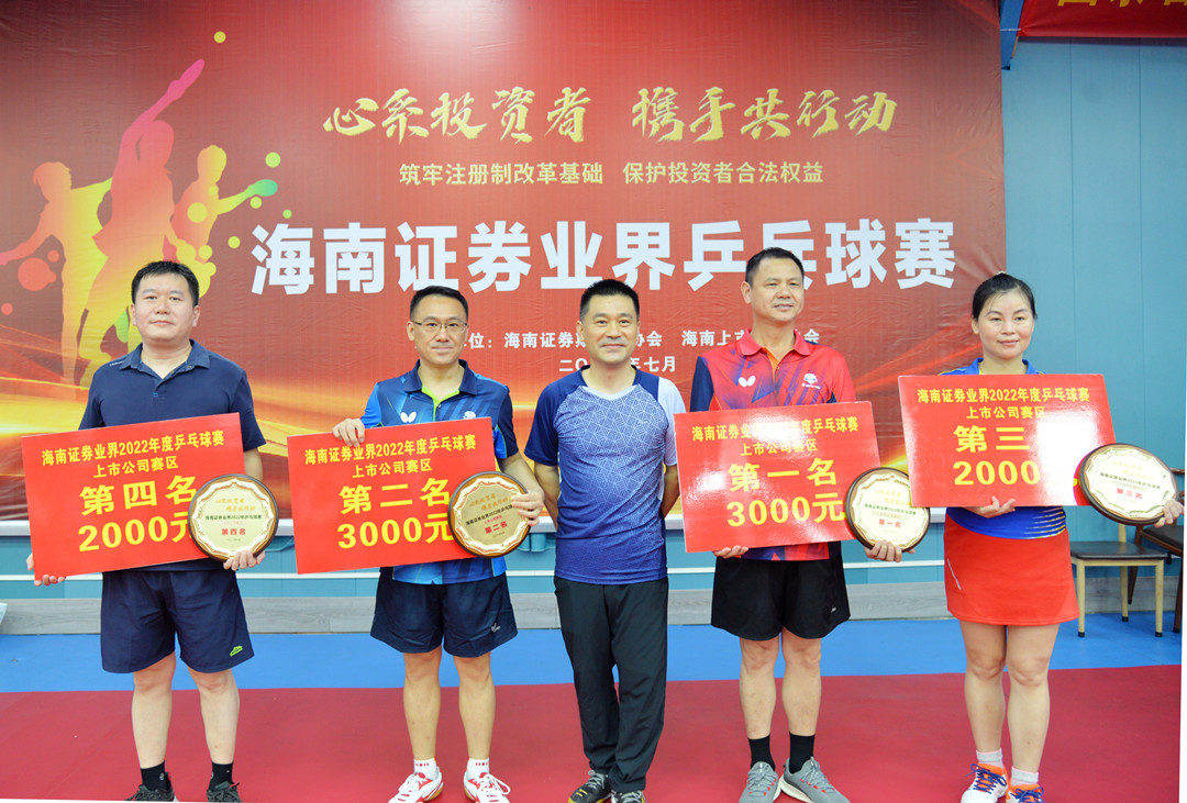 7月9日下午,由海南證券期貨業(yè)協(xié)會(huì)和海南上市公司協(xié)會(huì)聯(lián)合舉辦的2022年度海南證券業(yè)界乒乓球賽順利落下帷幕。經(jīng)過緊張激烈的角逐,公司代表隊(duì)榮獲了本賽事上市公司賽區(qū)第四名的佳績(jī)。