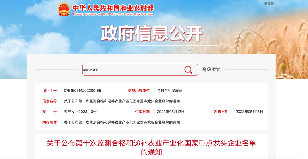 2023年,農(nóng)業(yè)農(nóng)村部會(huì)同全國(guó)農(nóng)業(yè)產(chǎn)業(yè)化聯(lián)席會(huì)議成員單位對(duì)2019年認(rèn)定、2020年監(jiān)測(cè)合格和遞補(bǔ)的國(guó)家重點(diǎn)龍頭企業(yè)開(kāi)展了監(jiān)測(cè),并于近日公布監(jiān)測(cè)結(jié)果。羅牛山股份有限公司監(jiān)測(cè)合格,上榜第十次監(jiān)測(cè)合格農(nóng)業(yè)產(chǎn)業(yè)化國(guó)家重點(diǎn)龍頭企業(yè)名單,繼續(xù)保留農(nóng)業(yè)產(chǎn)業(yè)化國(guó)家重點(diǎn)龍頭企業(yè)資格,這也是公司自2002年以來(lái)連續(xù)多年獲評(píng)農(nóng)業(yè)產(chǎn)業(yè)化國(guó)家重點(diǎn)龍頭企業(yè)。