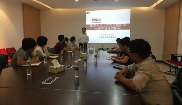 4月25日下午,羅牛山股份有限公司科技研發(fā)部在??诹_牛山農產品加工產業(yè)園肉類食品事業(yè)部發(fā)表了屠宰和加工方式對豬肉保水性和色澤的影響的研究成果,該科研成果有效提高了冷卻豬肉保水性、色澤和質構特性,將對降低生產運營成本起到有效作用。此次會議由龍達嘉博士主持。