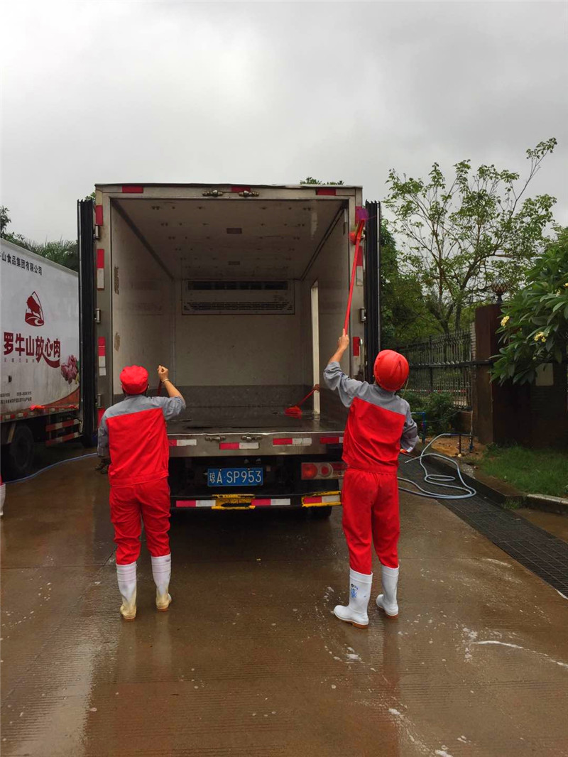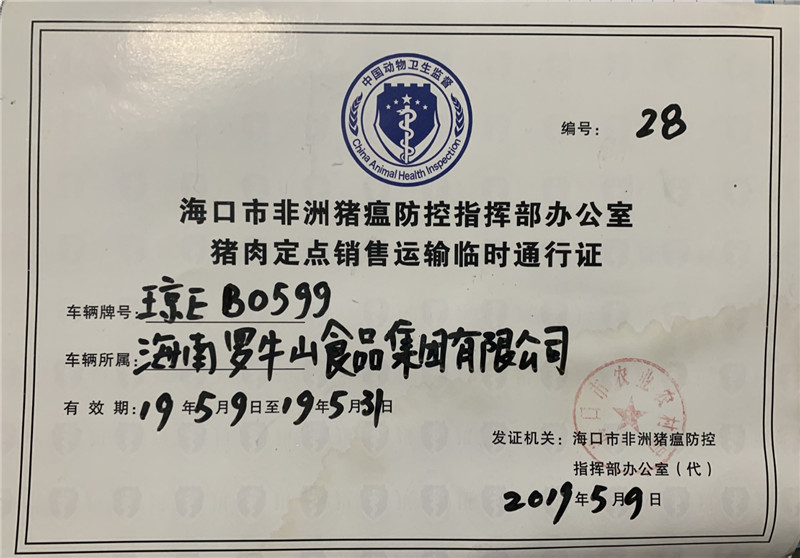 “最后一公里”的順利到達(dá),還離不開公司與政府的大力支持。為保障完成非瘟期間羅牛山豬肉供應(yīng)工作,冷鏈物流公司立即成立“防控非瘟工作領(lǐng)導(dǎo)小組”,下發(fā)《非瘟防控實(shí)施方案》與《非瘟防控應(yīng)急預(yù)案》,嚴(yán)格加強(qiáng)園區(qū)進(jìn)出管理;加強(qiáng)動物產(chǎn)品合法性檢查;加強(qiáng)園區(qū)清洗消毒和非瘟宣傳工作,全員戒備。冷鏈公司還專門為運(yùn)輸部增加人手;給夜班的司機(jī)們雙倍績效;白條車輛優(yōu)先排班,下足苦心,全力保障豬肉運(yùn)輸工作。同時(shí)海南省委、省政府,海口市委、市政府,??谑惺袌霰O(jiān)督管理局,非瘟桂林洋指揮中心等政府單位不定期到羅牛山產(chǎn)業(yè)園檢查指導(dǎo),不僅讓羅牛山感受到了此次任務(wù)的艱巨,更感受到了政府的親切關(guān)懷,讓每一個(gè)羅牛山人下定了決心、鉚足了勁與非瘟作戰(zhàn)到底。