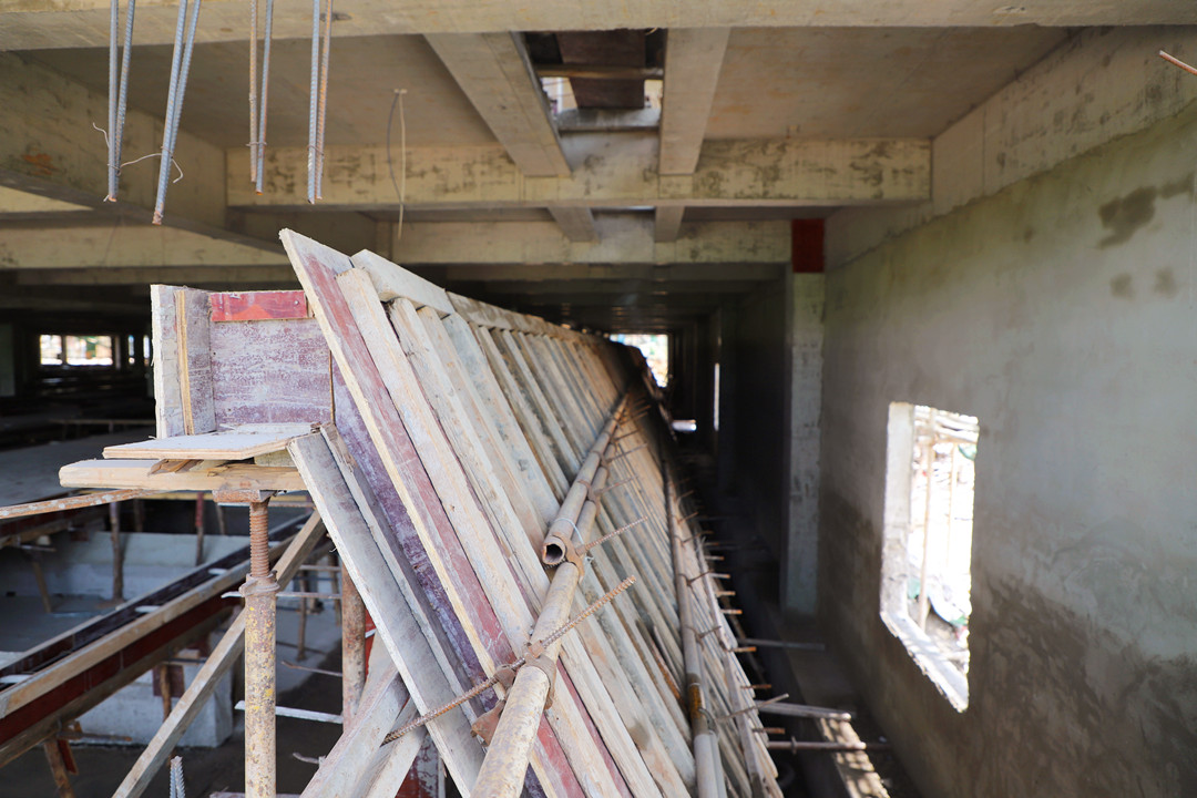 穿過腳手架,從安全通道走進框架樓體,于工程建設一竅不通的筆者看來,所到之處不過是鋼筋、水泥與木板搭建起的“立方體”。但對于長期駐扎羅牛山樂滿豬場的項目經(jīng)理梁海清來說,這里的每一處設計,都值得津津樂道。用他的話說,這些都是羅牛山“智造”。