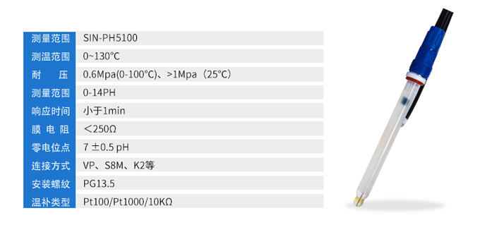聯(lián)測SIN-pH5100電極使用耐壓半球形pH敏感膜,混合膠GMT構(gòu)成的中介電介質(zhì),Ag/AgCL/KCL外參比體系,無鹽橋(OPEN)開口液接界所構(gòu)成。...…