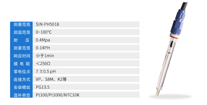 聯(lián)測pH5018電極敏感區(qū)域大、抗機械沖擊強,耐溫100度。該電極能廣泛用于微生物技術(shù)、制藥、食品飲料、制糖,包括氯堿、采礦冶煉、造紙、紙漿、紡織品、石油化工、半導體電子工業(yè)等各種化工流程及廢水處理等領(lǐng)域。...…