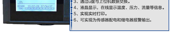 SIN-R200C系列無紙記錄儀是一種高速高性能微處理器和3英寸單色液晶顯示分辨率320*200,對現(xiàn)場各種溫度、壓力、流量、電量等信號實現(xiàn)監(jiān)測、控制和記錄功能。SIN-R200C系列無紙記錄儀可自由組態(tài)輸入標(biāo)準(zhǔn)電流、標(biāo)準(zhǔn)電壓、熱電偶、熱電阻、頻率等信號,可實現(xiàn)為傳感器配電和繼電器報警輸出,并且可通過U盤或通訊方式與上位機進行數(shù)據(jù)交換。無紙記錄儀本身具有實時數(shù)據(jù)顯示畫面、曲線顯示畫面以及棒圖數(shù)據(jù)顯示畫面,同時,可以與微型打印機相連接,實現(xiàn)現(xiàn)場打印功能,與聲光報警器連接,實現(xiàn)現(xiàn)場聲光報警功能。